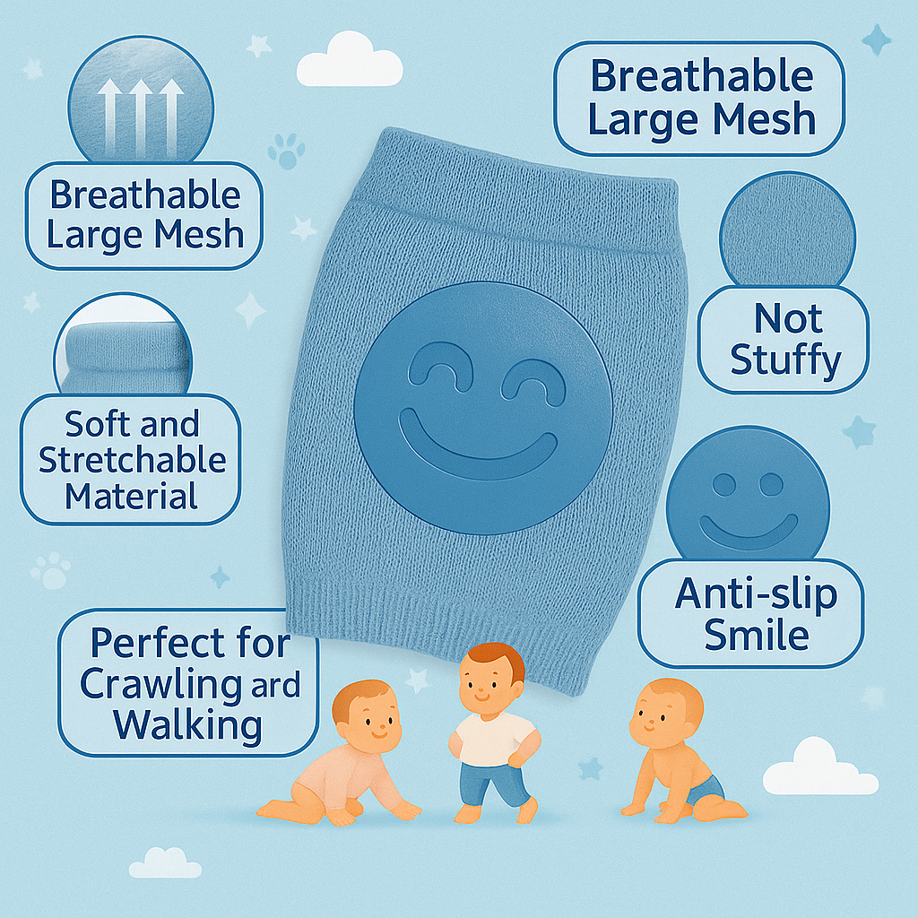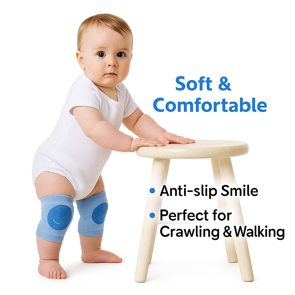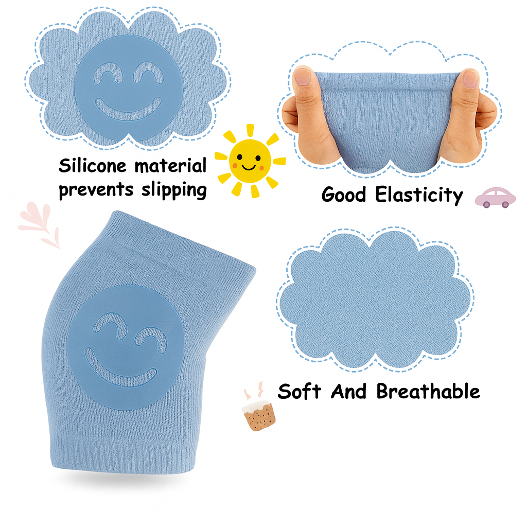 Crafted from soft, breathable, and stretchable cotton-blend fabric, the knee pads offer a gentle yet secure fit that stays in place without tightening your baby’s legs. The anti-slip textured grip ensures better stability on all floor types, giving babies the confidence to move freely and safely.