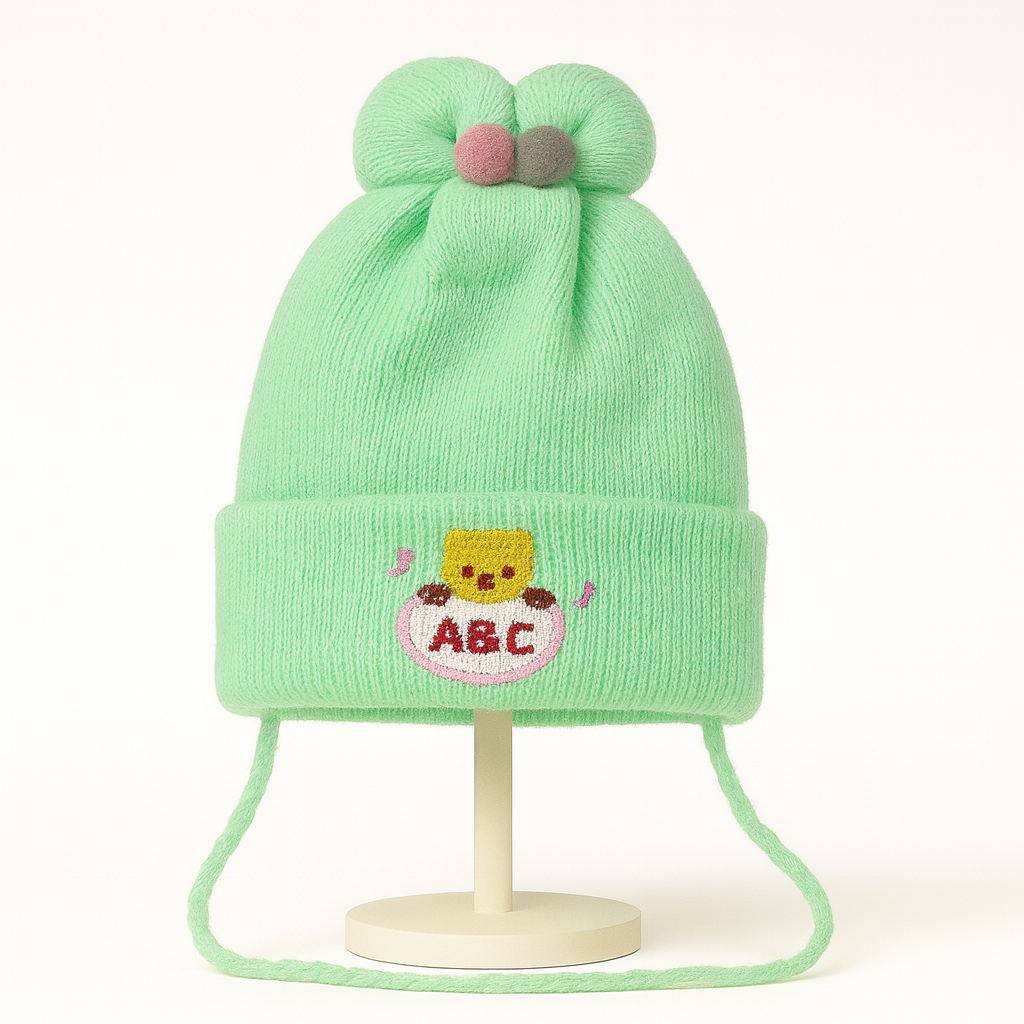 Designed with an adorable embroidered cartoon patch and cute top detailing, this woolen cap adds a fun and charming touch to your baby’s winter outfits. The extended ear protection and braided tie-up strings keep your baby’s ears covered and the cap firmly in place during outings, travel, or cold winter days.