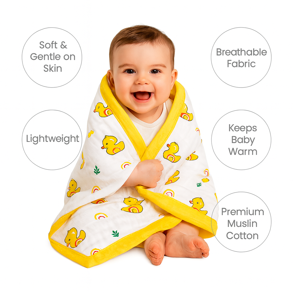 • 100% Pure Muslin Cotton – Ultra-soft, breathable & gentle on baby skin
