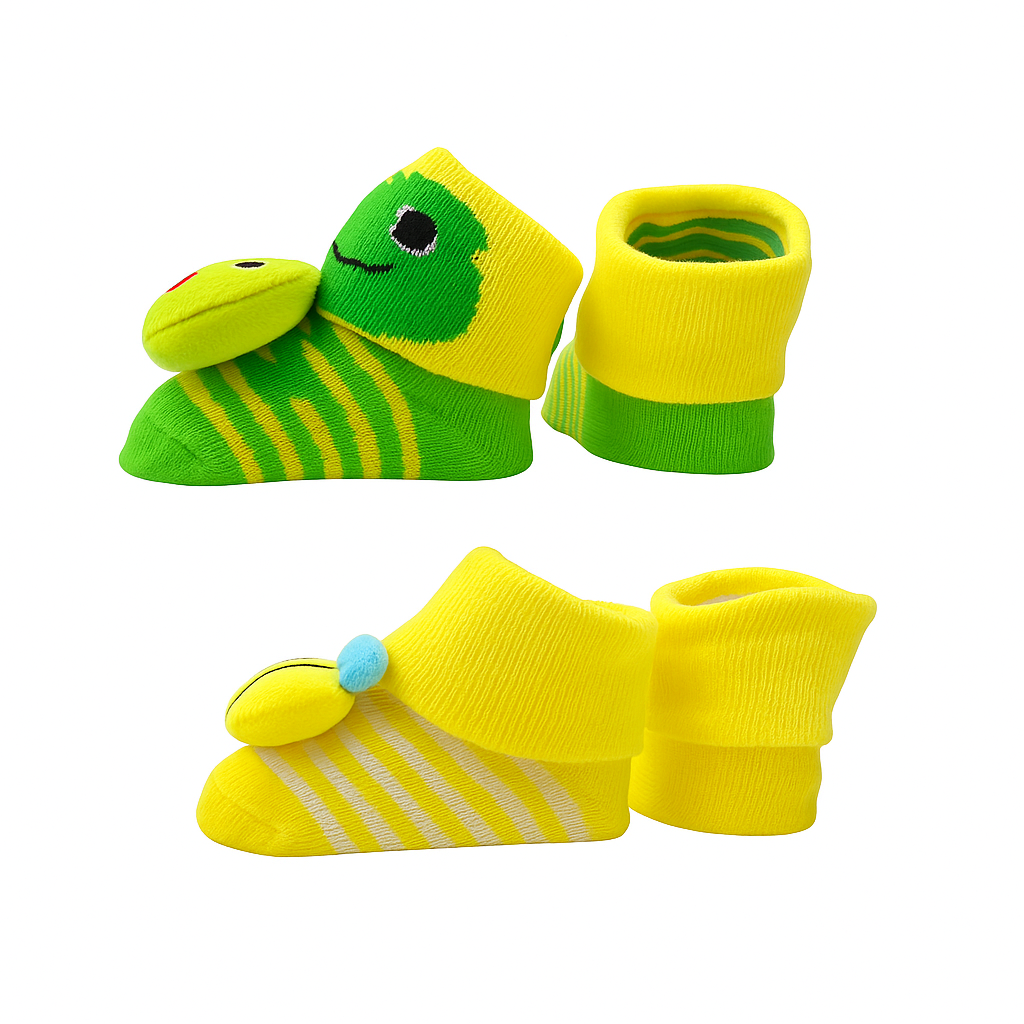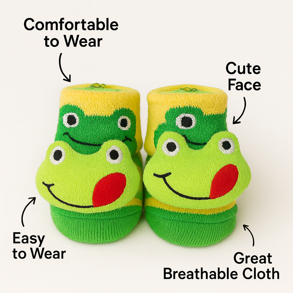 Crafted with breathable pure cotton, our baby booties are gentle on sensitive skin and ensure maximum comfort during playtime, sleep, and daily wear. The anti-slip sole provides extra grip, helping babies stay safe while crawling or taking early steps. Each pair features a snug yet flexible fit, ensuring the booties stay on without tightening the baby’s feet.